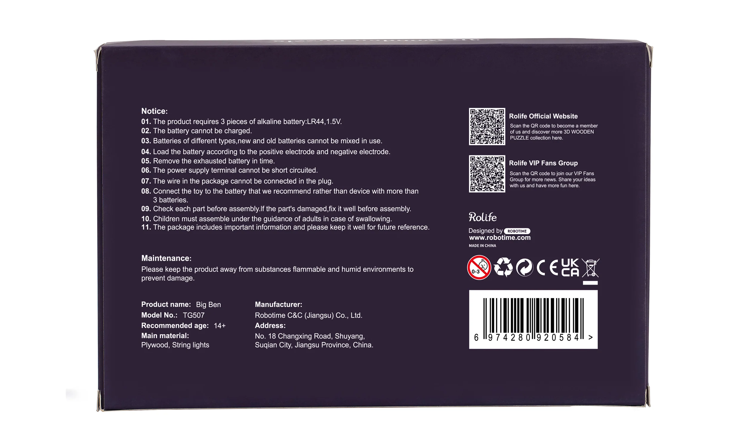 Het is echt gaaf hoe snel je jouw Rolife DIY kunt voltooien, allemaal dankzij de voorgesneden puzzelstukken die wij met behulp van geavanceerde lasertechniek maken. In tegenstelling tot andere modelbouwkits, hoef je hierbij geen gereedschap te gebruiken om de stukken op maat te zagen. Je klikt ze gemakkelijk uit de houten platen en schuift ze in elkaar. En wanneer je eindelijk dat ultieme moment bereikt waarop je het ledlicht in jouw Big Ben aanzet … Adembenemend!