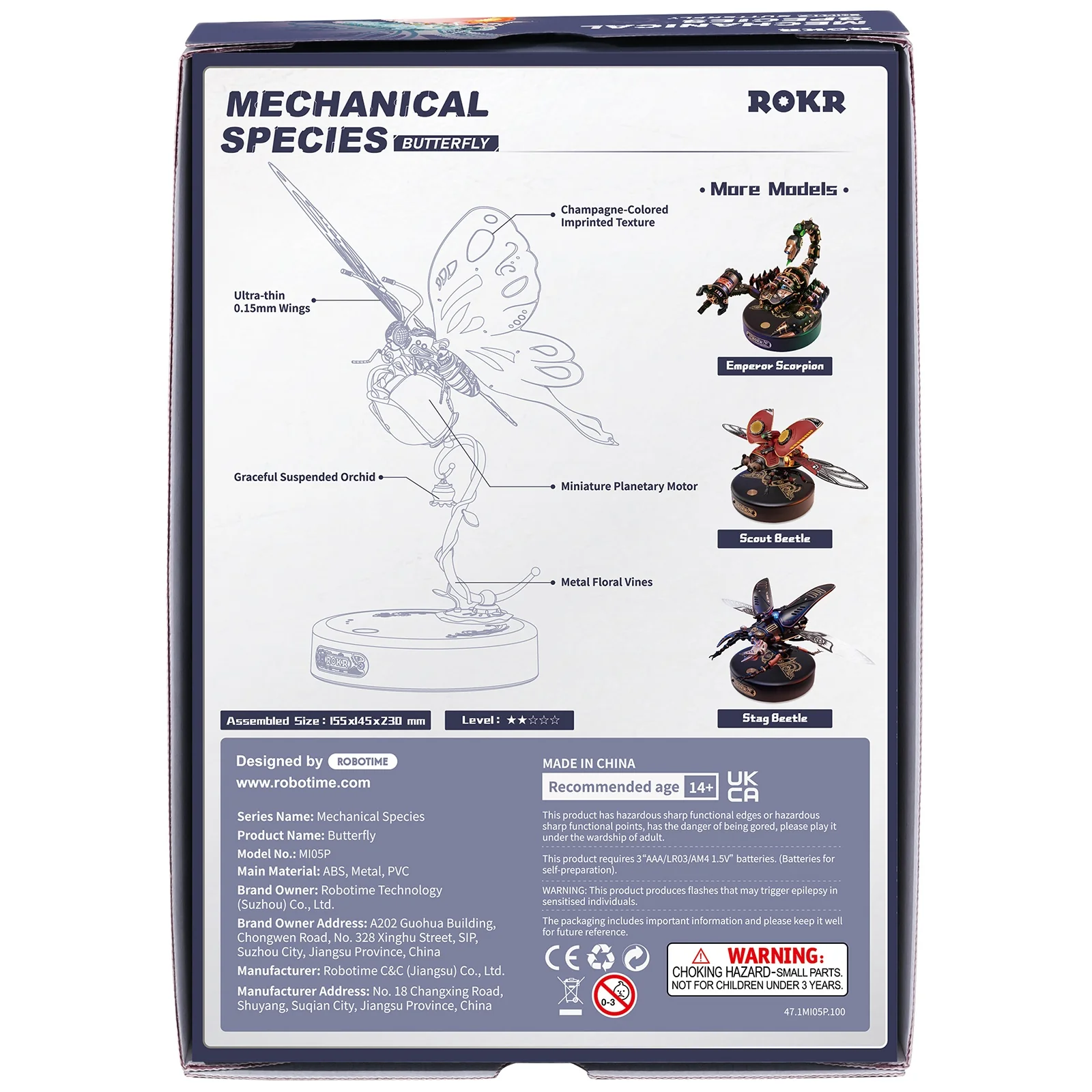 Je vlinder is slechts het begin. Bij ROKR zijn er talloze andere mechanische bouwsets beschikbaar. Zowel van hout als van kunststof of metaal, zoals van het zusje-vlinder op de blauwe roos tot een rode gevechtskever en van zelfs minder vriendelijke wezens zoals een schorpioen tot een neushoornkever. Allemaal ontworpen om te bewegen, lichtjes te laten branden en te fascineren. Dus waar wacht je nog op? Voeg deze betoverende creaties toe aan je collectie. Je huis komt tot leven met de magie van ROKRs mechanische organismen.