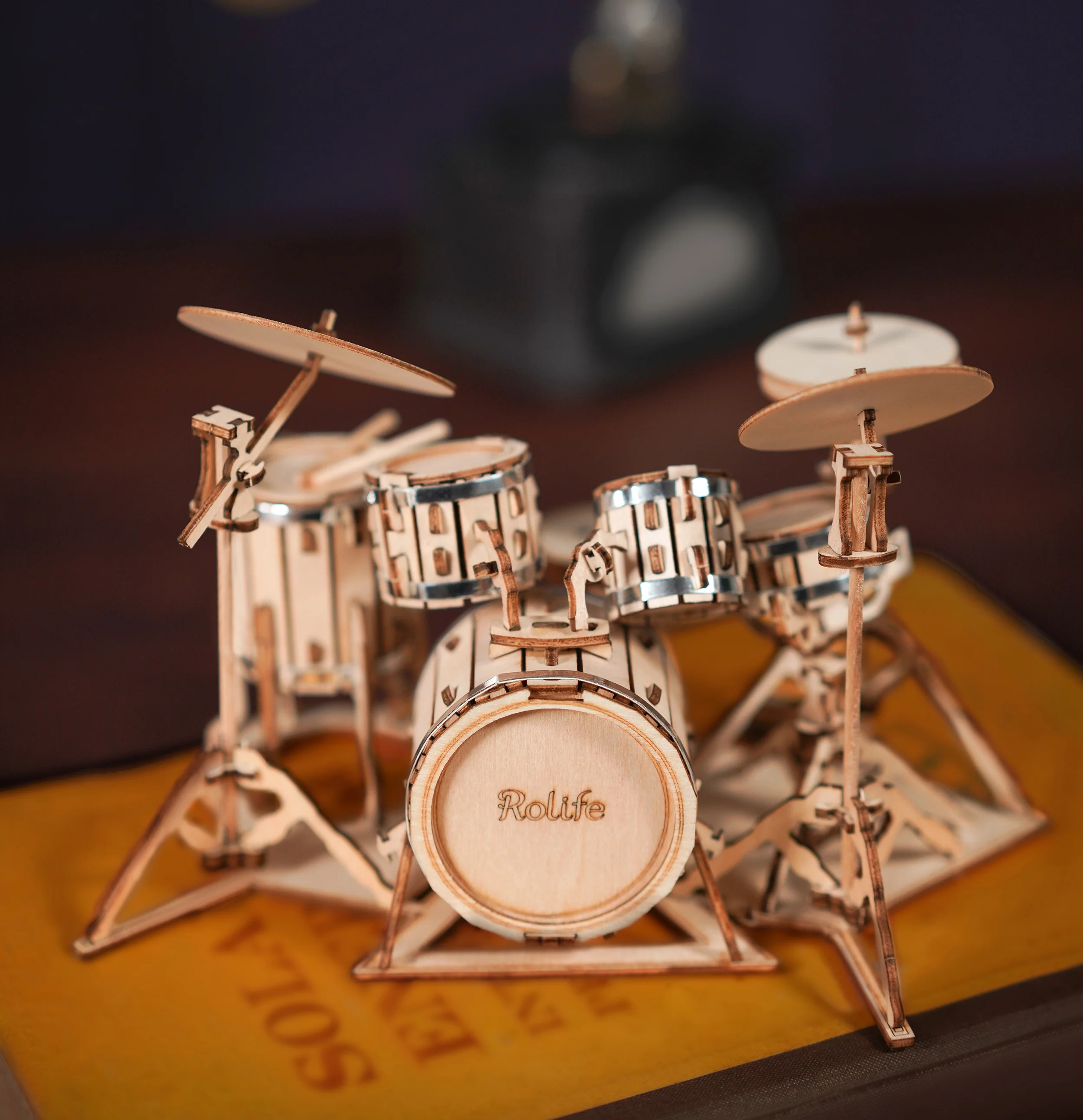 Als jij een drumstel ziet, kun je je dan bijna niet beheersen om er even een roffel op te geven? Dan hebben we goed nieuws voor jou, want wij hebben een miniatuur akoestisch drumstel. Hoewel je er niet op kunt drummen, is het wel een ge-wel-di-ge aanvulling op je interieur. Ondanks zijn bescheiden afmetingen van slechts elf centimeter hoog en twintig centimeter breed, is het bewonderenswaardig hoeveel details Robotime DIY in deze bouwkit heeft verwerkt, inclusief metalen banden om de drums!