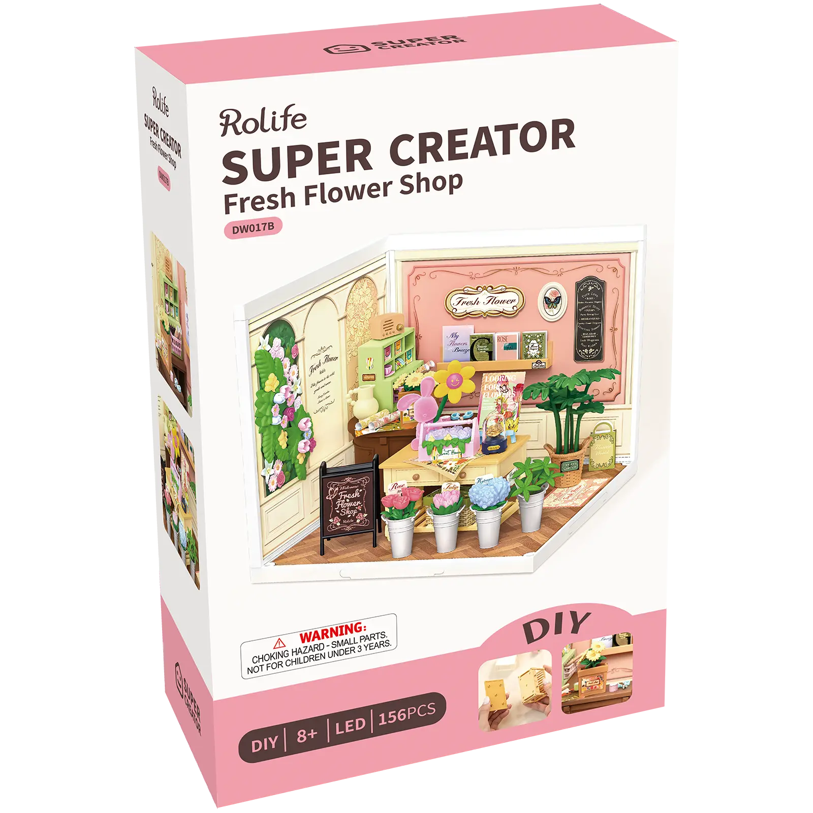 Haal nu snel de Rolife Fresh Flower Shop in huis. Maak hem zelf als vrolijk, decoratief project in huis, maar hij is ook ideaal als erg leuk origineel cadeau. Laat de bloemen bloeien in je verbeelding, en op je plank.