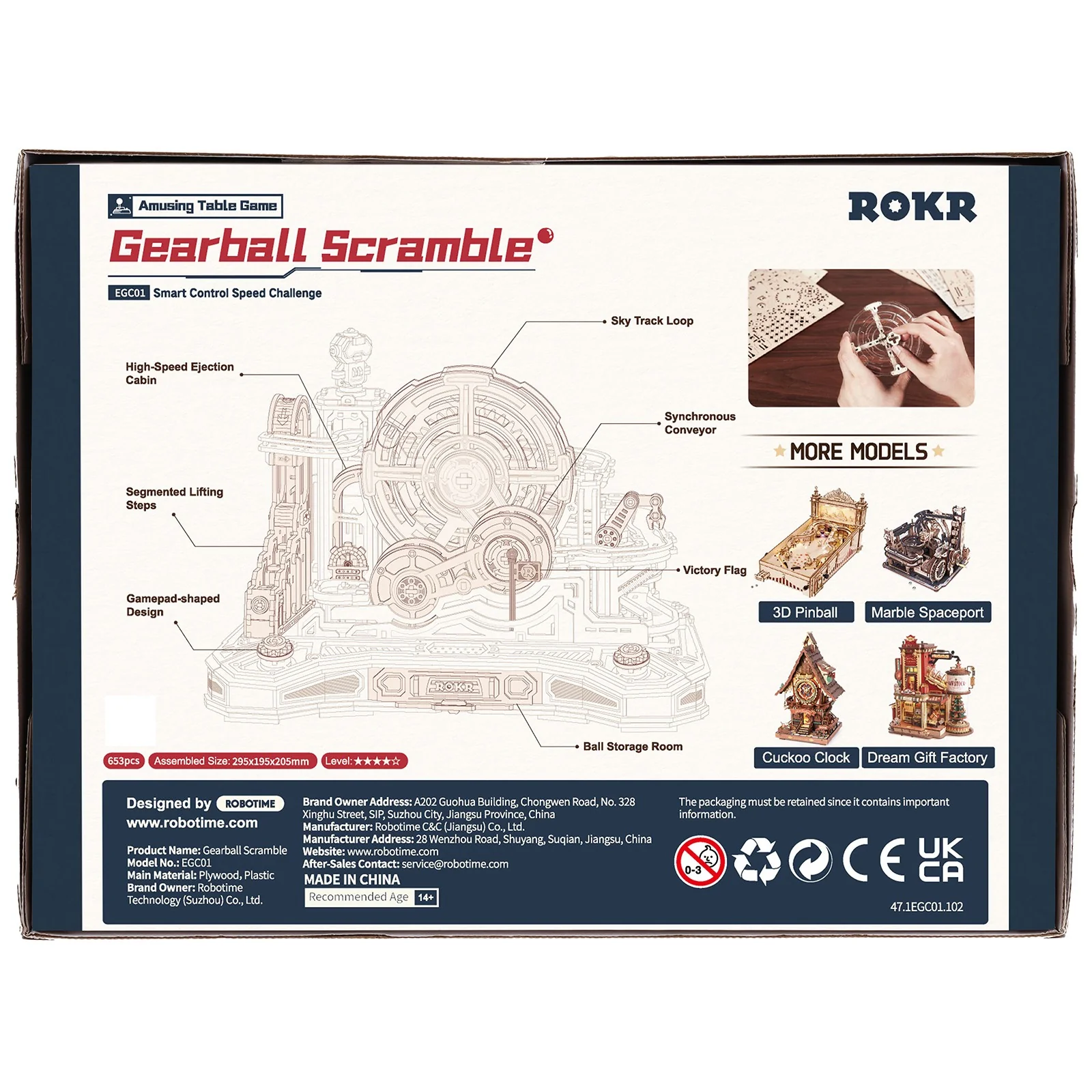 Hoe leuk is dit! Een gamepad in de vorm van een knikkerbaan of is het andersom? Als je van boven op je nieuwe ROKR bouwpakket van hout kijkt, dan zie je echt de vorm terug van een gamepad mét knoppen! Haal uit het opslagkamertje voor knikkers jouw kogel en zet hem in het spel. Via een omhoog bewegende trap komt je bal terecht in de transparante sky track loop vanwaar hij gelanceerd wordt naar weer een andere gave feature. Alles beweegt aan dit fascinerende bouwpakket. Maar natuurlijk pas als je hem gebouwd hebt. Aan de slag!