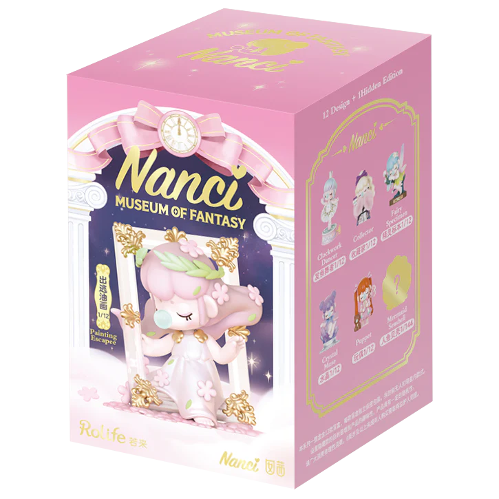 Blind box? Yes! Stap binnen in het wonderlijke Museum van fantasie, waar elke verrassingsdoos een deur naar een magische expositie opent. Hier zijn de muren niet stil en de vitrines niet leeg: de kunstwerken lopen namelijk weg, dansen op een muziekdoosje of vallen in slaap in een bloem. Op de verpakking zie je altijd de ontsnapte Nanci uit het schilderij, maar achter de goudomrande lijst schuilt nog een wereld vol geheimen. Welke Nanci verschijnt in jouw collectie, dat ontdek je pas op het moment van openen.