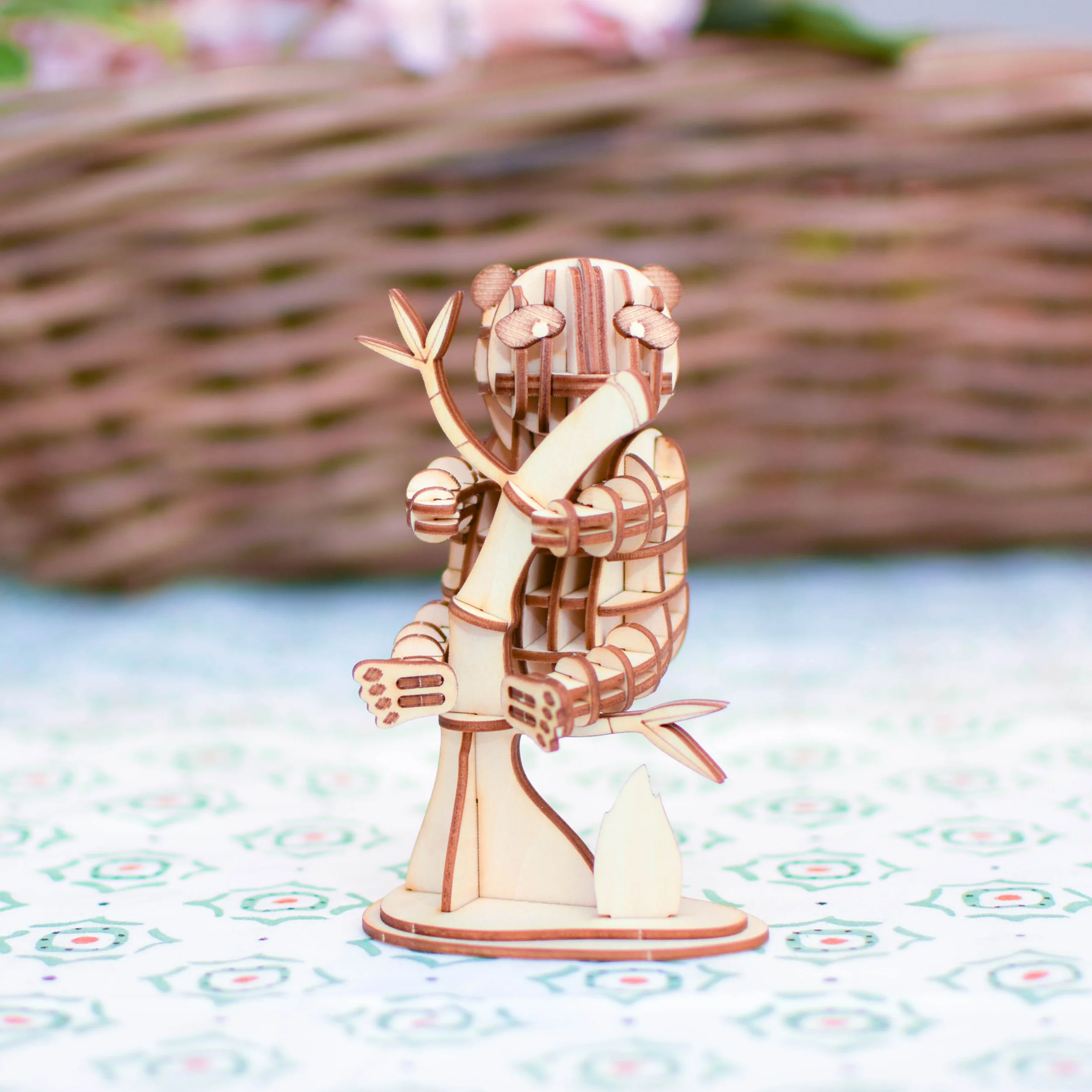 Zin in een bouwpakket dat je in een paar uurtjes in elkaar zet? Dan is deze houten pandabeer die in een boom zit, precies wat voor jou! Hij heeft al heel wat takken van de boom opgegeten en hij heeft misschien daarom een lach om zijn snoet. Net als de echte zwart met witte, of is het wit met zwarte, pandaberen in China, heeft hij de kenmerkende grote vlekken om zijn ogen. Jouw statische wilde beer heeft grappige voeten en de boom staat op een stevige steun. Je 3D-puzzel wordt een centimeter of 12 hoog, als je hem tenminste goed in elkaar gezet hebt.