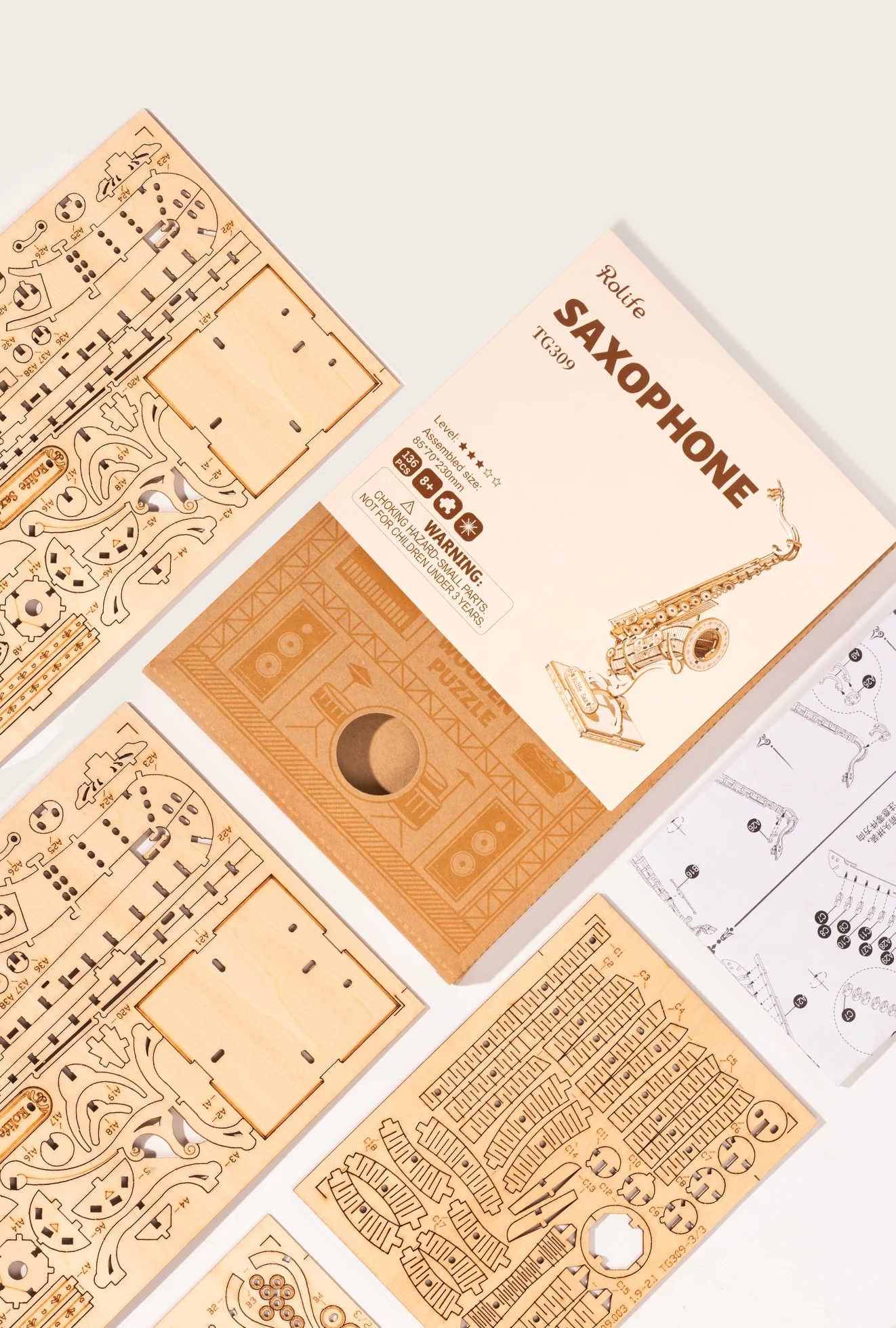 Bouwpakketten volwassenen zijn weer terug van weggeweest. Een van de betere voorbeelden van zo’n miniatuur bouwpakket is deze statische saxofoon. De uitvinder van de sax, de Belg Adolfe Sax, had in 1840 niet kunnen vermoeden dat Robotime een perfecte, houten minireplica zou uitbrengen. Van alle werkelijk prachtige details die verwerkt zijn in dit houten bouwpakket, ga jij genieten. Wel zelf even bouwen.