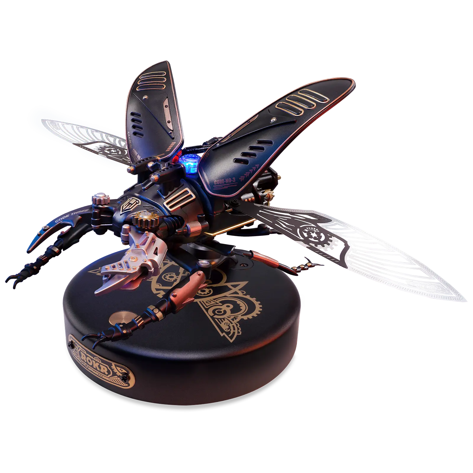 Dit bouwproject is gebaseerd op werkelijke insecten. Je zult versteld staan van de mooie details die de kevers ook in het echt hebben. Maar eh, wat is dan die bonus? Nou, dit insect kan niet alleen 920 keer per minuut trillen met zijn vleugels, hij kan ook iedere twee seconden bijten met zijn kaken! Stoerder kan bijna niet. O, wacht achter aan zijn schild draait nog een wapen en blauw licht schijnt bovenop.